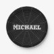 Black grey spider web Halloween pattern Your name Paper Plate