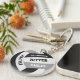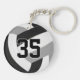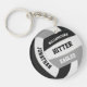 This team colours volleyball themed keychain for boys or girls features a realistic looking black, grey and white volleyball upon which you can customise the player's name, jersey number and court position, plus school or club name and mascot name in a varsity letter style font - by katz_d_zynes
