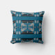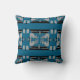 Black Grey Turquoise Horizontal Mosaic Tiers Motif Cushion