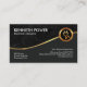 An elegant black grunge and grey wave is accentuated by a faux gold lining with a gold power plug logo riding the waves at the top. Your prestigious name and job title rest in the grunge layer above. Southwards of this in the grey wave is your optional slogan. Just beside this lies the business name and contact details.