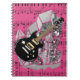 Cool Spiral Notebook Featuring Black Guitar Pink Sheet Music Silver Crystal Design - Great for Students and Music Lovers!