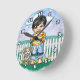 Black Hair Boy and Dog Round Clock