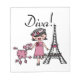 Diva T-shirts, bodysuits, mugs, bags, cards, stickers, key chains, pillows, wall clocks, and much more with a cute diva design featuring a black haired girl in a hat and pink dress with her pink poodle near the Eiffel Tower!