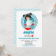 This girl's birthday invitation features an adorable dark haired girl dipping her feet in pedicure water with bubbles everywhere. Turquoise, red and white.