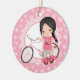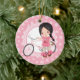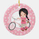 Black Haired Bicycle Girl - Pink White Ceramic Ornament