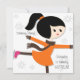 A black haired ice skating girl on skating theme birthday invitations that are easy to customise with your child's birthday party information!