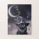 Black Halloween Cat Wearing a Witch Hat Jigsaw Puzzle