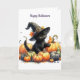 Black Halloween Kitten With Pumpkins & Witch's Hat Holiday Card