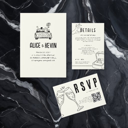 Black Hand Drawn Illustration Minimalist Wedding Invitation Belly Band