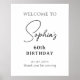 Welcome guests to your event with this customisable birthday party welcome sign. It features a handwritten script and simple typography. Personalise this minimalist 60th birthday welcome sign by adding your own event details. The texts are fully editable for any event. This handwritten birthday welcome sign is perfect for any event.