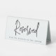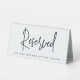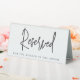 Indicate reserved seating at your wedding or event with this elegant and modern table tent sign featuring "Reserved" in elegant handwritten script lettering, with your custom text beneath. Colorway: Ash, a soft black.