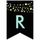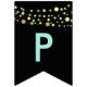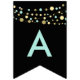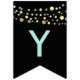 black Happy birthday bunting flags, lights glitter