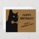 Black Happy Birthday Cat with a Brown Bow Tie Postcard