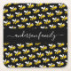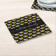 Black happy bumble bees fun humour monogram script square paper coaster
