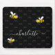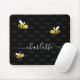 Decorated with happy, smiling yellow and black bumble bees. A chic black background. Personalise and add a name and your monogram, initials. The monogram in grey as a pattern in the background. The name is written in white with a modern hand lettered stylie script with swashes. To keep the swashes only delete the sample name, leave the spaces or emoji's in front and after the name.