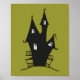 Crooked creepy haunted house in a black silhouette on a swamp green background