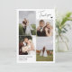 Wedding thank you card with a clean four photo collage and thank you in a neat signature script on one side with a cute black heart. On the other side, two more photos and a printed thank you message and your names.