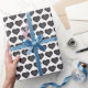 This wrapping paper features a repeating pattern of black hearts with a subtle outline.