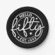 Celebrate a fabulous 50th birthday with stylish party accessories that showcase eye-catching white typography set against a sleek black background. They proudly display the message "Hello Fifty," inviting guests to join in the celebration. You can personalise these items even further by adding your birth year, making them uniquely yours.
