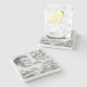 The coasters are gorgeous, a quality feel and heavy weight. They look like a precious archeological find. A rustic stone juxtaposed with a modern floral black and white print. I like the way the print goes slightly imperfect on the cut stone edges giving them a kind-of natural beauty.