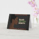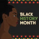 A young African American woman with dark skin, curly hair, and a serious expression against a black background with colourful geometric patterns and the 'text' Black History Month
