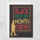 This powerful typographic design features the statement “Black History Month Forever” in bold, high-contrast lettering framed by clean graphic lines. A silhouetted figure walking forward adds a sense of movement, progress, and reflection. The minimalist black-and-white composition emphasizes strength, remembrance, and cultural pride, creating a timeless visual message centered on history, identity, and continued recognition.