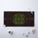 A black hole sun themed design featuring a pulsating, radiating geometric graphic illustration with a red, green and black colour palette. It is captioned with black hole sun and the recipient's initials. Fully editable.