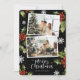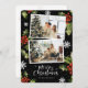 Black photo Merry Christmas card featuring snowflakes and holly with berries on a black background. Easily personalise this photo holiday card with your photos and text.