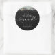 Add a girly touch to your soy candles with this trendy black label with hand lettered script and holographic glitter. You can add your business name and website as well as changing the scent of the candle.