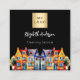 A black background decorated with colourful watercolored houses. Personalise and add your business logo, name and text on front.