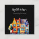 A black background decorated with colourful watercolored houses. Personalise and add your name and text on front.