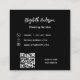 Back: Templates for your name, title, phone number, mail and website address, QR-code to your website or social media account.