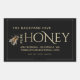 Black rectangle label with taupe text and frame. Customers will take a second look at your honey with this realistic honeybee sitting near the word "honey".