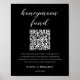 Black Honeymoon Fund QR Code Wedding Sign. Place these signs at your wedding reception tables so guests can scan to add a monetary gift to your honeymoon fund. To generate a new QR code on the design, add the URL of your Cash App, Paypal or Venmo in the area provided, using the "personalise" feature. A brand new QR code will then be added to to the design.