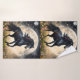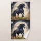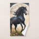 Pictured In Front Of A Full Moon In A Flower Field Is A Black Horse Rearing.