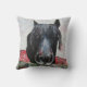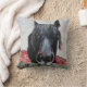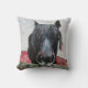 Black Horse Portrait with Red Flowers Cushion