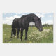 This photograph of a big black horse has a whimsical look to it, as if it was taken with a fish eye lens. The Friesian stallion's baroque neck is highlighted in this distorted photo.