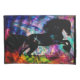 Original digital art of black horse running though abstract fire, with an abstract world. I also created a stained glass effect for this artwork. Created using Photoshop.