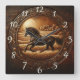 Black Horse Running Through Fields at Sunset Square Wall Clock
