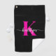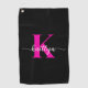 This simple, modern golf towel with your first name in a trendy script font in white and your first initial in a modern cap font in hot pink on black is perfect for you. It's stylish and trendy and yet very classic. It's unique - like you! Get a couple so you always have a clean one on hand.