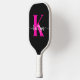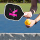 This simple, elegant black pickleball paddle with your first name in a trendy script font in white and your first initial in a modern cap font in hot pink is perfect for you. It's stylish and trendy and yet very classic. It's unique - like you!