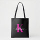Black Hot Pink Monogram Tote Bag