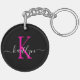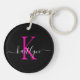This modern black keychain with your first name in a trendy script font in white and your first initial in a modern cap font in hot pink is perfect for your keys.