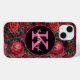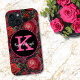 Black Hot Pink Roses Marble Diamond Monogram Name Case-Mate iPhone Case