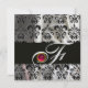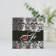 BLACK ICE SILK DAMASK CLOTH MONOGRAM PINK RUBY INVITATION