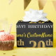 This wrapping paper design features a message like "CustomName’s 20th BIRTHDAY!", with the "20th" having a faux/imitation gold-like colour appearance. The name can be customised, and the background is coloured black. It could perhaps be used when wrapping gifts being given for somebody’s twentieth birthday. [~Z0000177]