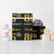 This wrapping paper design features a message like "FirstName’s 86th BIRTHDAY!", with the "86th" having a faux/imitation gold-like colour appearance. The name can be personalised, and the background is coloured black. It could perhaps be used when wrapping gifts being given for somebody’s eighty sixth birthday. [~Z0000177]