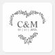 Black Initial On a Branches Heart Square Sticker