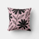 Black Ink Daisies Pink Boho Art Pillow.