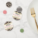 This super cute bridal shower confetti features assorted colours and patterns and sizes of confetti with the largest being 2.5" that have an all-over floral pattern on a black background. The flower pattern consists of lovely roses in cream, ivory, and pink, with orange Peruvian lilies and green foliage. An ivory band runs across the centre of the large confetti with strips of simulated gold at the top and bottom that run the width of the circle shape. Your custom text is printed in coral pink, black, and sage green. The medium size confetti has a black and ivory striped pattern on one side and the floral pattern on black on the other side. The smallest size confetti has coral pink on one side and sage green colouring on the back. How fun would these be on your bridal or wedding shower tables?! Email niteowlstudio@gmail.com if you need any matching items or help customising the wording.